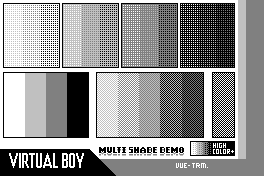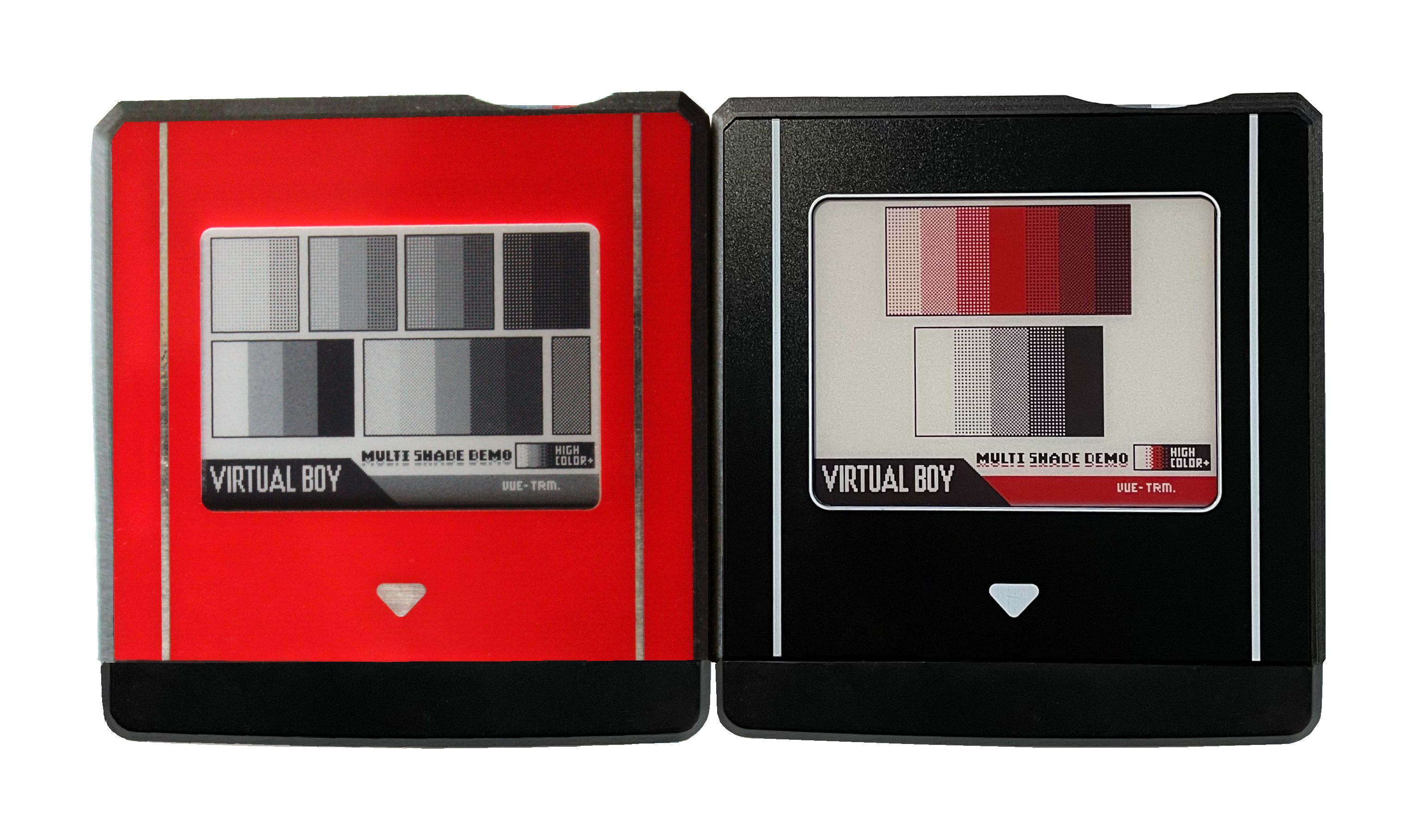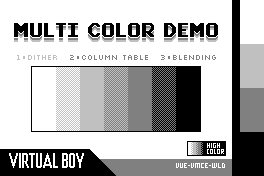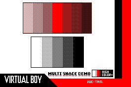 Next, I've also adapted a few labels too. First you up can see the original programming label by Mumphy, and my mockups for what it could look like on the red cart (unfortunately it isn't practical to use red in the flashing screen since it takes a lot longer to "load" than the black and white e-ink). After that, you'll see my adaptations of Team VUEngine's Multi Colour Demo, which expand the dither selection, and adapt for the red screen respectively.